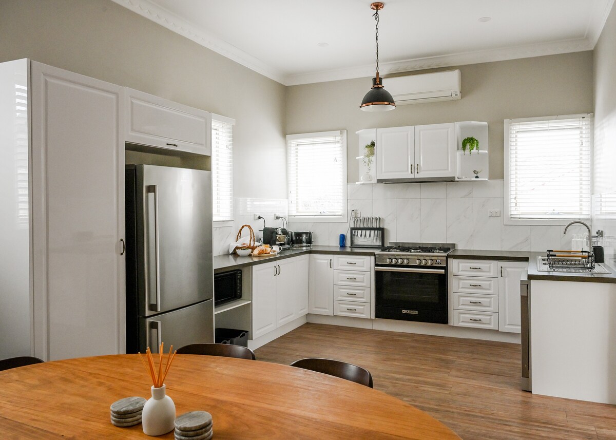 Carisbrook cottage is a stylish cosy 1920’s blue brick home, Featuring 3 Spacious bedrooms, a living room that is accompanied by a wood fire, a bathroom with a separate toilet and a modern kitchen & dining area for all your entertainment needs. Located 2 blocks from Armidale CBD. Everything you need is located within walking distance, including TAS, cafes, pubs, shopping center and Corner Creperie across the road. With a secure fenced yard, it’s perfect for visitors with small outdoor pets.