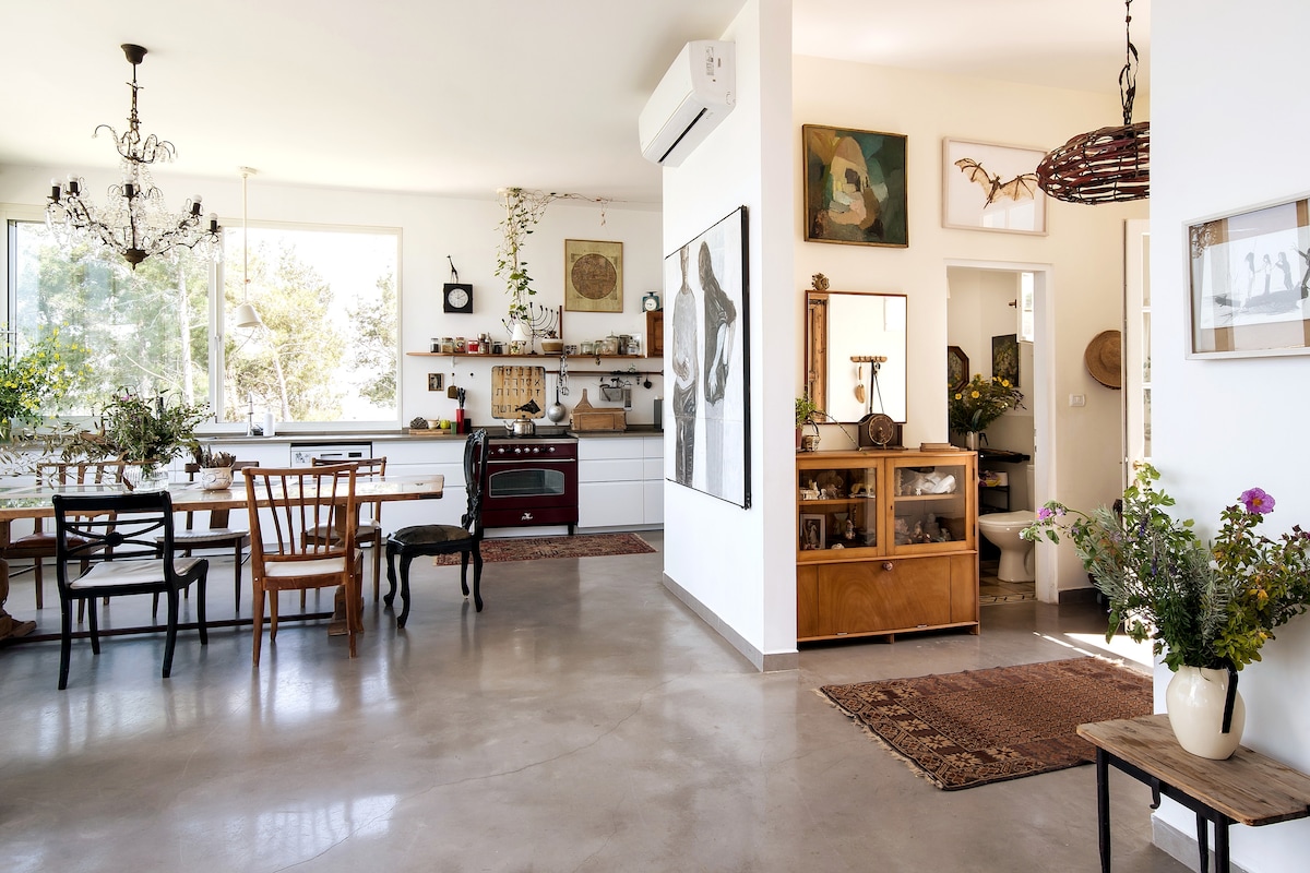 Up north of the Mediterranean coast, on a rocky hill covered with local flora, a quiet and peaceful atmosphere unfolds. Driving up forested hills, as they open into a panoramic view of the Western Galilee and Haifa Bay, the winding road leads to the small kibbutz of Adamit. At the highest point of this intimate settlement stands the home of two artists, Asia and Yuri, and their large family.
