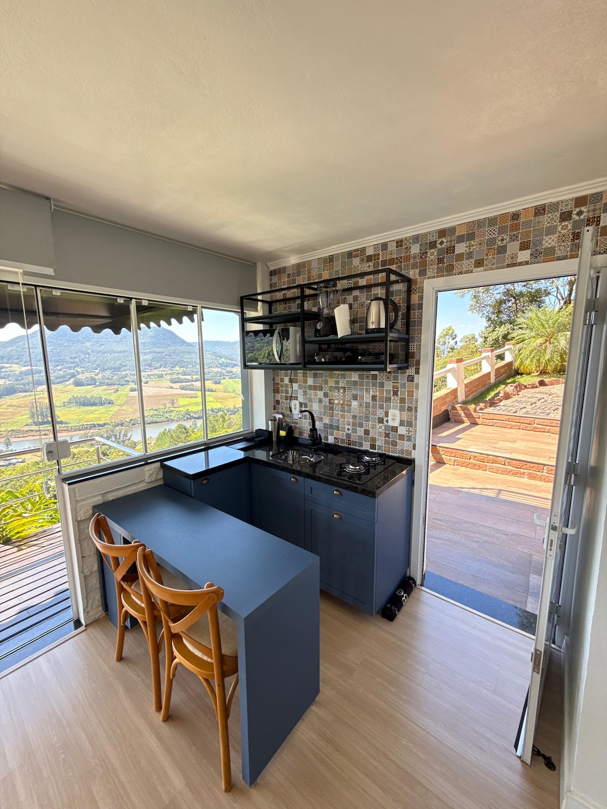 Conheça a primeira Tiny house do Vale do Taquari, localizada no alto do Morro da Ventania em Arroio do Meio. Desfrute de um delicioso café recepção preparado com produtos coloniais e uma jacuzzi externa com vista incrível para o vale. Cozinha completa para preparo de refeições. Itens básicos de cozinha disponíveis, bem como venda de pizzas congeladas e bebidas. Para a criançada um playground e muito pátio cercado para brincar Estamos na Rota para o Cristo Protetor de Encantado e Viaduto 13.