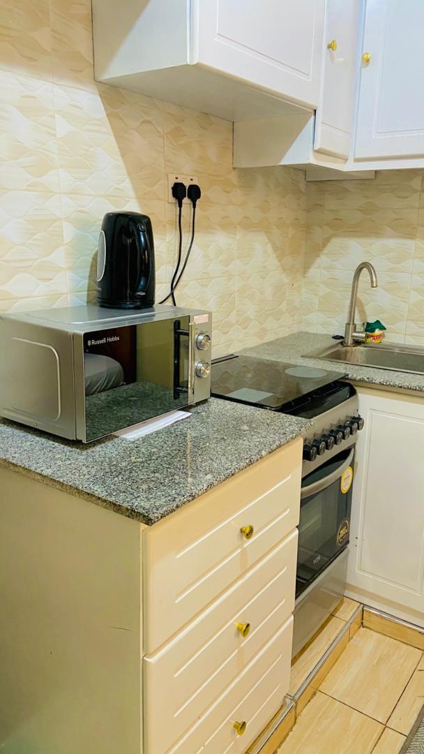 This is a 1 out of 5 (same compound - links below🌟) spacious & serene space in Njiro. Ur stylish 1-BDR APT on the 1st floor, designed for comfort & charm. Enjoy a fully equipped kitchen, a sleek bathroom, a tranquil bedroom & a cozy living room that opens to an outdoor dining area overlooking Mt Kilimanjaro. Njiro Comm. Centre 600m Safari Minimart 800m Radio 5 FM 700m Njiro Legacy 1.4km Njiro Sec School 2.1km The Pillars 2.2km Megacare Polyclinic 2.2km IAA 3.9km ESAMI 4.4km Larry V Garden 4km