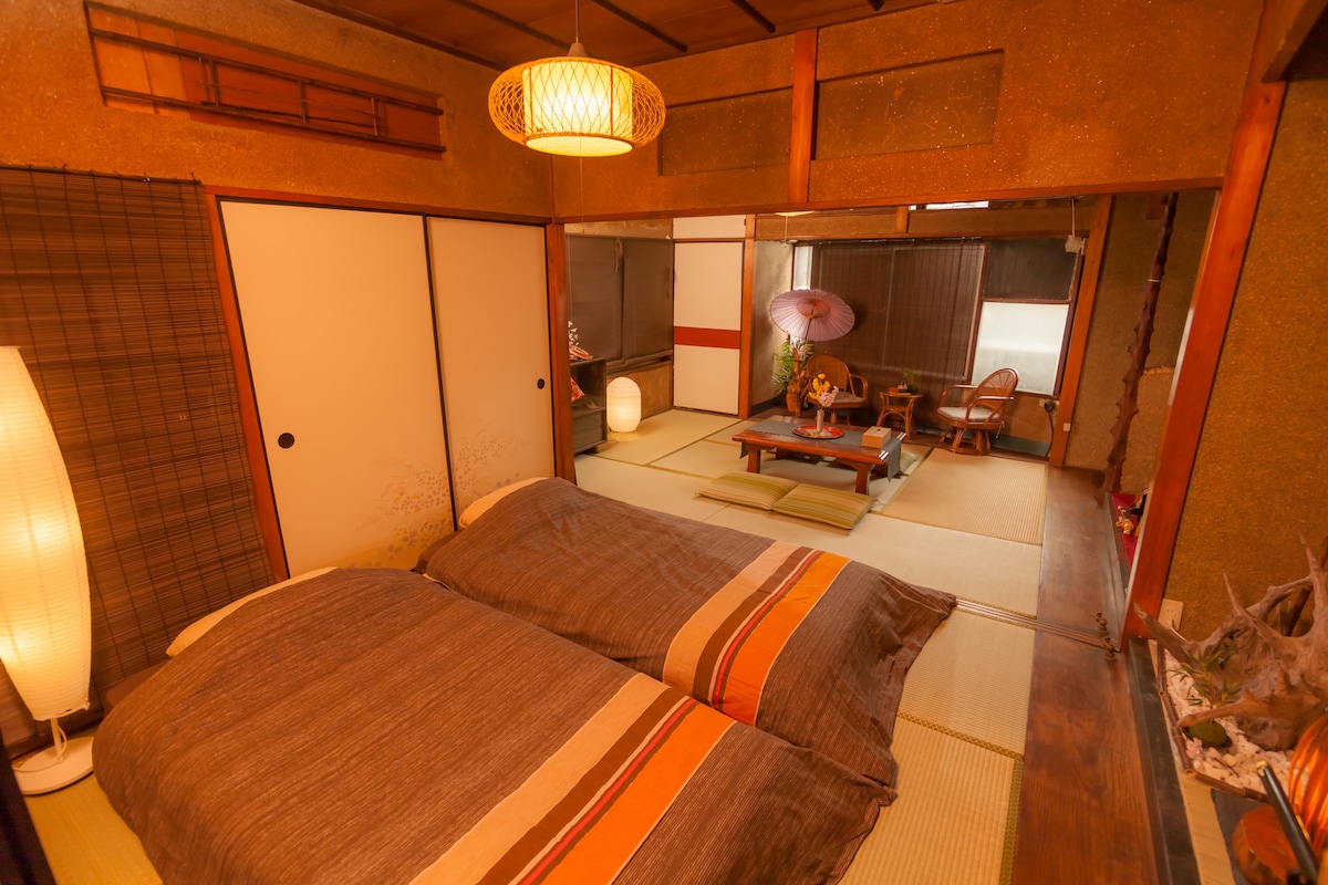 60㎡/ Traditional Japanese style/ Private house (No Sharing) / Free Wi-Fi My House, full of Japanese taste, is a unique house with traditional Japanese decoration. In addition to Japan's unique architecture such as tatami, alcove(Tokonoma), and paper-covered partitions(Fusuma), my house is interior decorated with items such as samurai unique to Japan, shoji paper, cherry tree, and sword. It is recommended for families, couples, friends, those who want to stay in a private space slowly.
