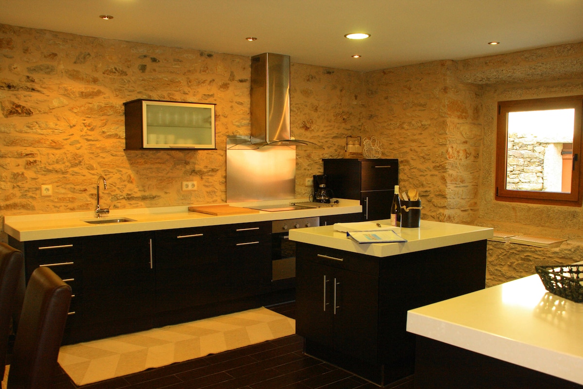 Rustikalna hiša z visoko stopnjo opreme, kuhinja z Indukcijsko kuhinjo, pomivalni stroj, mikrovalovna pečica, cvrtnik itd. Shramba s pralnim strojem, ki meri 7 KG. glasbena tkanina in WI-FI, kopenski signal in satelit s sodobnim 43-inčnim televizorjem. Kamin (stara lareira). Ledena osvetlitev v zaprtih in zunanjih prostorih. Terasa s stoli in mizami ter senčnikom, vrt, velik žar. Običajni registrirani hórreo. Morsko okolje z neštetimi plažami, značilnimi za Costa da Morte