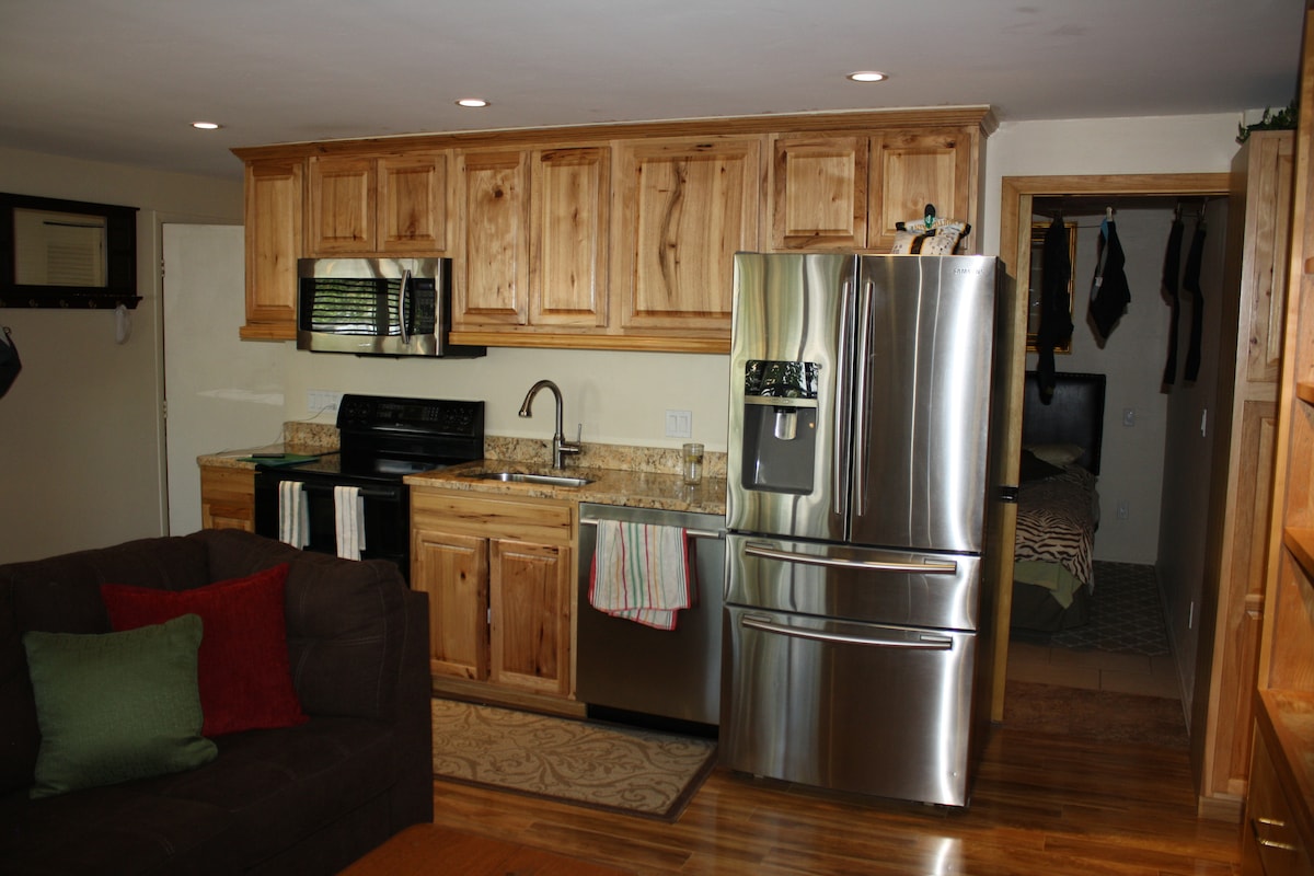 Ta pred kratkim ponovno zasnovan prostor je popoln za maksimizacijo majhnega prostora v čudovito prenočišče. Popolnoma bela paleta poskrbi, da je prostor videti čist, od belih stropov do tal iz pecan lesenih ploščic. Kuhinja ima nove gospodinjske aparate, umivalnik iz marmorne kmetije in svetlo barvno shemo. Ponujamo dvojno dnevno posteljo z enojno posteljo, ki se izvleče iz spodnje dnevne postelje in jo je mogoče spremeniti v veliko zakonsko posteljo, ter vse ostalo, kar boste morda potrebovali za uživanje v Aspenu.