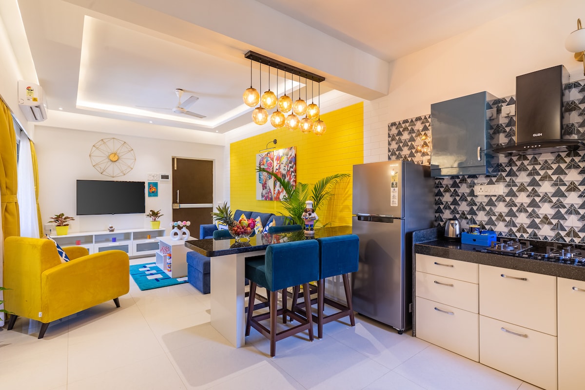 Classy 1bhk with pool | 10 mins from the beach