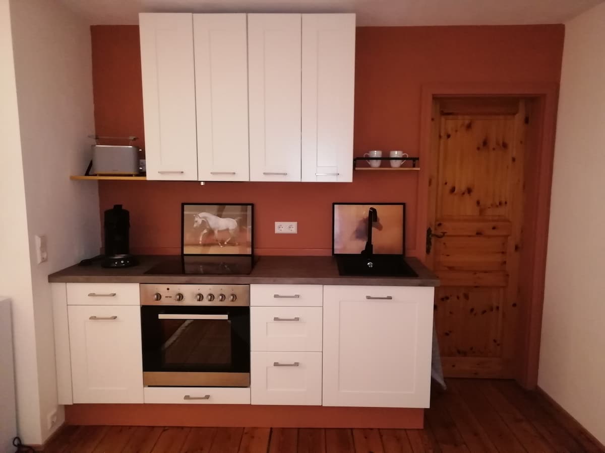 Obiščite nas v naši prenovljeni hiški na deželi nad 1000 m² z neposrednim sosednjim potokom, pokritim balkonom in velikim vrtom! Lesena hiša velikosti 50 kvadratnih metrov se nahaja na mirni lokaciji na obrobju vasi in je bila prebujana z veliko ljubezni do detajlov iz spalnega lepotnega spanca. Naš majhen umik je bil v bistvu prenovljen in na novo opremljen tako znotraj kot zunaj. Vzemite si odmor in napolnite baterije ob kaminu v prijetnih večerih:-)