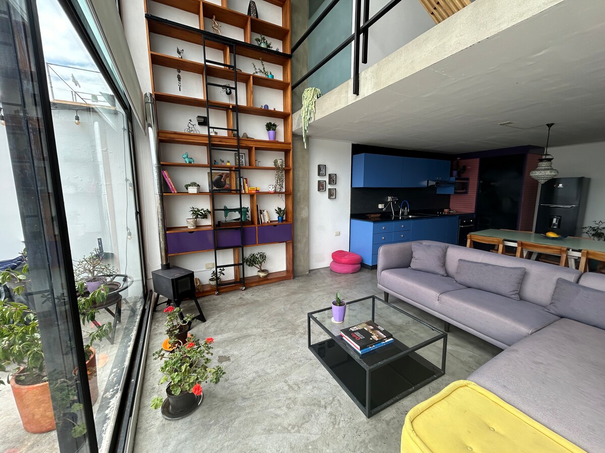 Chuquiragua Loft je dom v butičnem slogu za pare, samostojne pustolovce, prijatelje in poslovneže, ki cenijo oblikovalske detajle in udobno, sodobno opremo za kratkotrajna in dolgotrajna bivanja. POSEBNOSTI: -Centralna lokacija - tradicionalni kolonialni poudarki -Spektakularni razgledi - udoben kamin -High-speed Wi-Fi - varno in zasebno Chuquiragua je eno od šestih zasebnih stanovanj v čudovito obnovljenem 100-letnem kolonialnem domu, ki se nahaja le pet minut hoje od mesta Quito Centro Historico