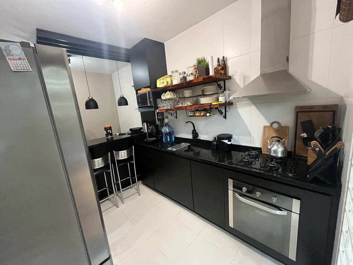 Popoln apartma ob oceanu v Cambuhy Resortu, idealen za družine in pare. Integrirana gurmanska dnevna soba, opremljena kuhinja, žar, dnevna soba s televizijo in 3 spalnice. Kondominijski klub ob morju z bazeni za odrasle in otroke, telovadnico, knjižnico igrač, sobo za zabave in igre, športnimi igrišči, kioski in 24-urnim hišnim upraviteljem, nogo v pesku z ekskluzivnim dostopom do plaže. Idealno za 5 oseb, vendar udobno sprejme do 6 gostov, posteljnina je vključena.