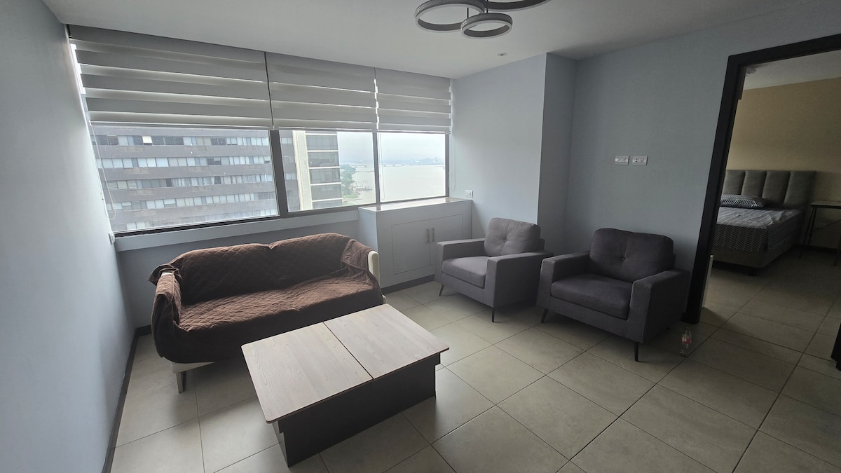 Naša suita s pogledom na reko ima vse! Kaj potrebujete za udobno bivanje 🥳 Nahajamo se v najboljšem mestnem sektorju in imamo recepcijo, non stop skrbnika, bazen, telovadnico in predvsem do: bank, restavracij, tržnic, barov, otroških parkov in še veliko več! Če iščete elegantno bivališče z najboljšim razgledom, je naša suita idealna za vas! Najboljše iz pristanišča za naše goste 🙋🏽♂️🥳🙏🏽