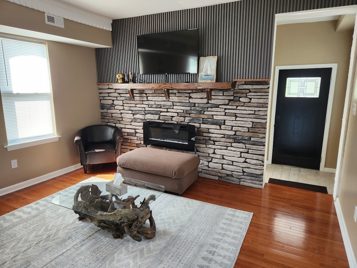 All the comforts of home and walking distance to the boardwalk and beach! Kitchen with everything you need for cooking. Smart TVs in the living room and bedrooms. Games, puzzles, and kids books for entertainment. Washer and dryer free in unit. Open concept living, very clean and comfortable. Sit on the front porch to enjoy the bay view and salt air. Beach tags, chairs, sand toys, and towels provided for summer. Housebroken dogs are welcome to come with you. We have a fully fenced backyard.