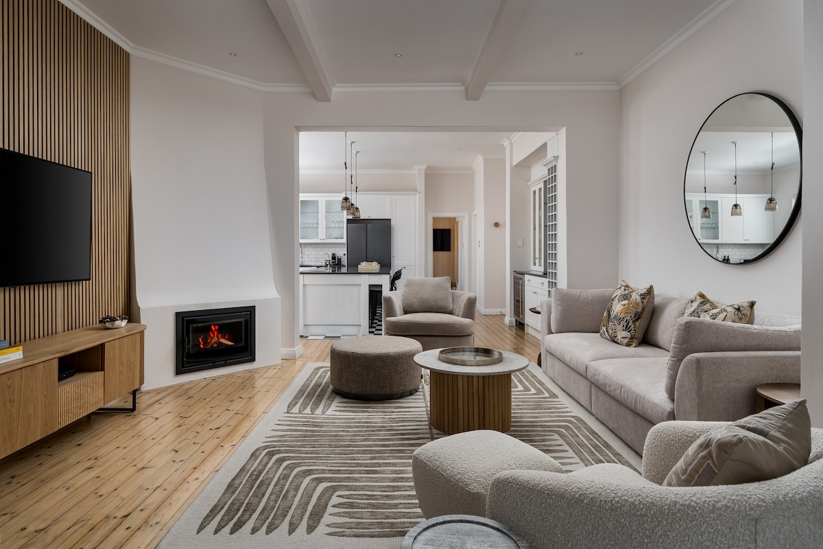 Tik ob promenadi Sea Point ima ta čudovita viktorijanska hiška na deželi izjemno elegantno prenovljeno notranjost. Medetaža v mansardnem slogu služi kot tretja spalnica ali studio za jogo ali pisarna ali pa samo miren prostor za umik. Do kavarn in restavracij v Sea Pointu se lahko sprehodite, za vogalom pa so najboljše plaže v Cape Townu. Sončno dvorišče za sprostitev in večere na stojalu, medtem ko vam kamin nudi udobje. 2 postelji. Dodatni kavč v medetaži. Varno in brezplačno parkiranje na ulici. UPS