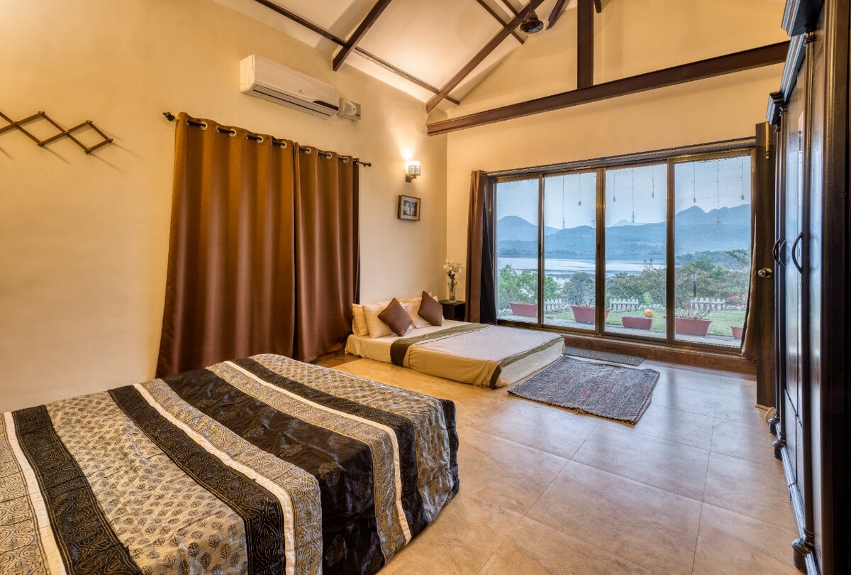 Escape to a serene retreat just 70km from Mumbai and Pune, nestled in the lap of nature. This beautiful, fully furnished 2BHK mountain villa offers a perfect getaway for families and small groups, hosting up to 6 people comfortably (6-8 with extra mattress) . Embrace the fresh mountain air, relax in this calm, stylish space, the sound of singing birds, and the serene surroundings. This villa is your perfect escape from the hustle and bustle of city life, offering tranquility and rejuvenation