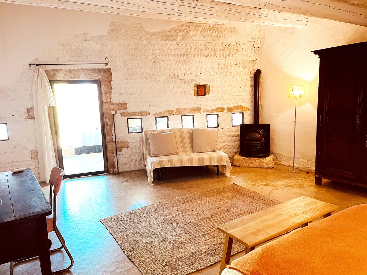 Dobrodošli v kraju Mas des Prépresses – La Maison des Vendangeurs Bivajte v očarljivi hiši v osrčju kmečke hiše iz 18. stoletja, obdani z veličastnimi stoletnimi platanami 🌳 in čudovitim razgledom na okoliško podeželje🌾. Idealna lokacija za raziskovanje draguljev juga: Pont du Gard, Uzès, Avignon, Arles, Nîmes, Alpilles, Camargue ali sredozemske plaže🌞. 👉 Kliknite našo profilno fotografijo, da odkrijete naše druge nastanitve.