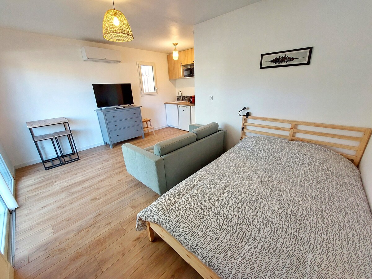 Neodvisni studio se nahaja v naši hiši, v bližini centra in je na voljo od nedelje zvečer do petka zjutraj, idealen za študente ali potujočega delavca. Ta popolnoma prenovljen studio velikosti 15 m2 je popolnoma opremljen z novo posteljo velikosti 140 cm, odprto kopalnico (prha in stranišče), majhno kuhinjo. Cenili boste našo nastanitev zaradi udobne postelje in neodvisnosti. /!\ STROGO prepovedano kajenje, kajenje pred hišo ni dovoljeno.