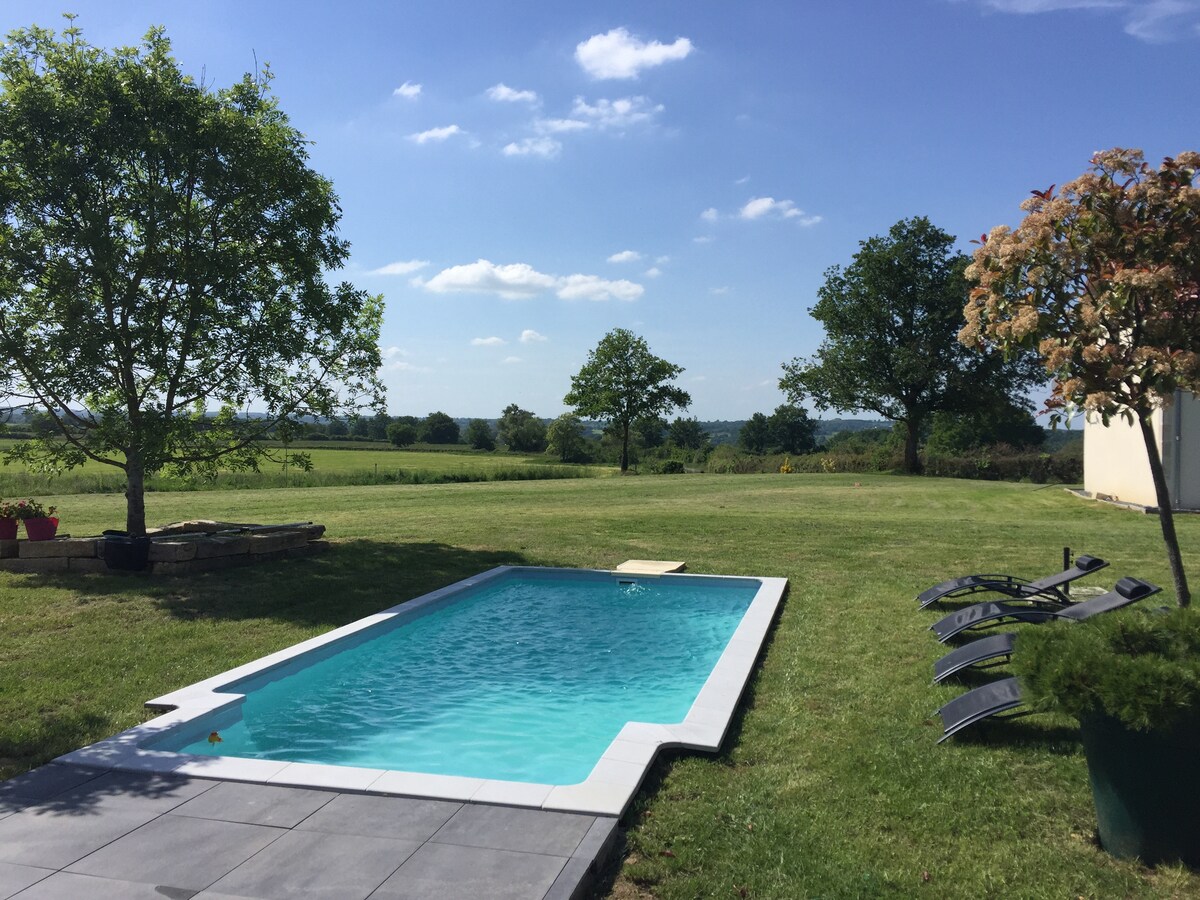 Ta nekdanja kmečka hiša, ki se nahaja v majhnem zaselku, 18 km od Montluçona, je bila v celoti obnovljena v gorsko hiško z zasebnim bazenom in wellnessom (spa, savna ). Uživali boste v tej hiši s trezno in sodobno dekoracijo ter zunanjim zunanjim prostorom. 3000 M²). Idealen kraj za bivanje, ki združuje udobje, mir in sprostitev v osrčju Bourbonnaisa. Kompleks je v celoti privatiziran za gostitelje