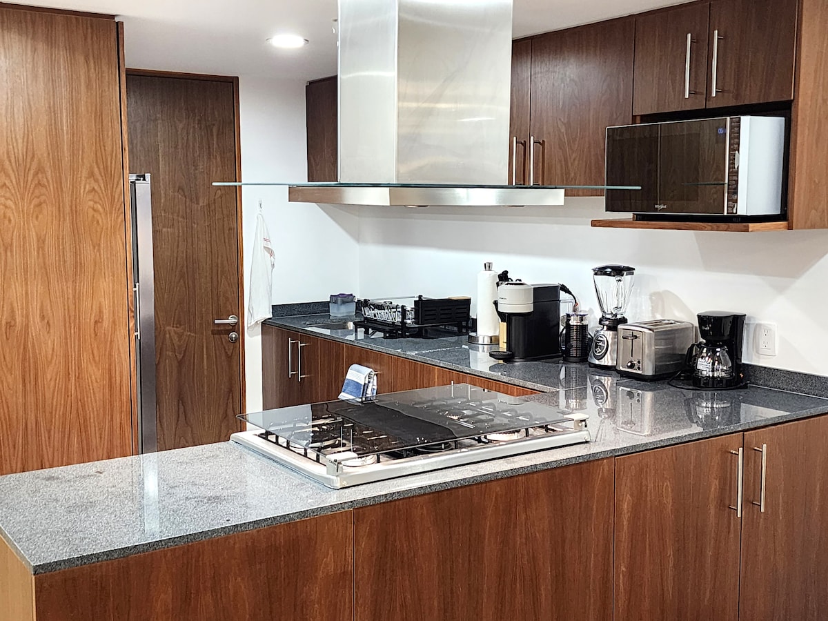 Enjoy this wonderfull 1 bedroom apartment: * Breathtaking Panoramic Views Skyline * One of a kind * Best Location Mexico in City * Super safe + Lots of Restaurants + Café´s + Stores & more * Top Amenities * 24/7 Concierge at the lobby * Super Fast & very reliable Wifi * Comfortable dedicated work space * Fully equipped Kitchen * Queen Size bed with European memory foam mattress. * Well thought and super comfortable space * Full of plants * Sparking clean and sanitized * Spacious * Full of Magic