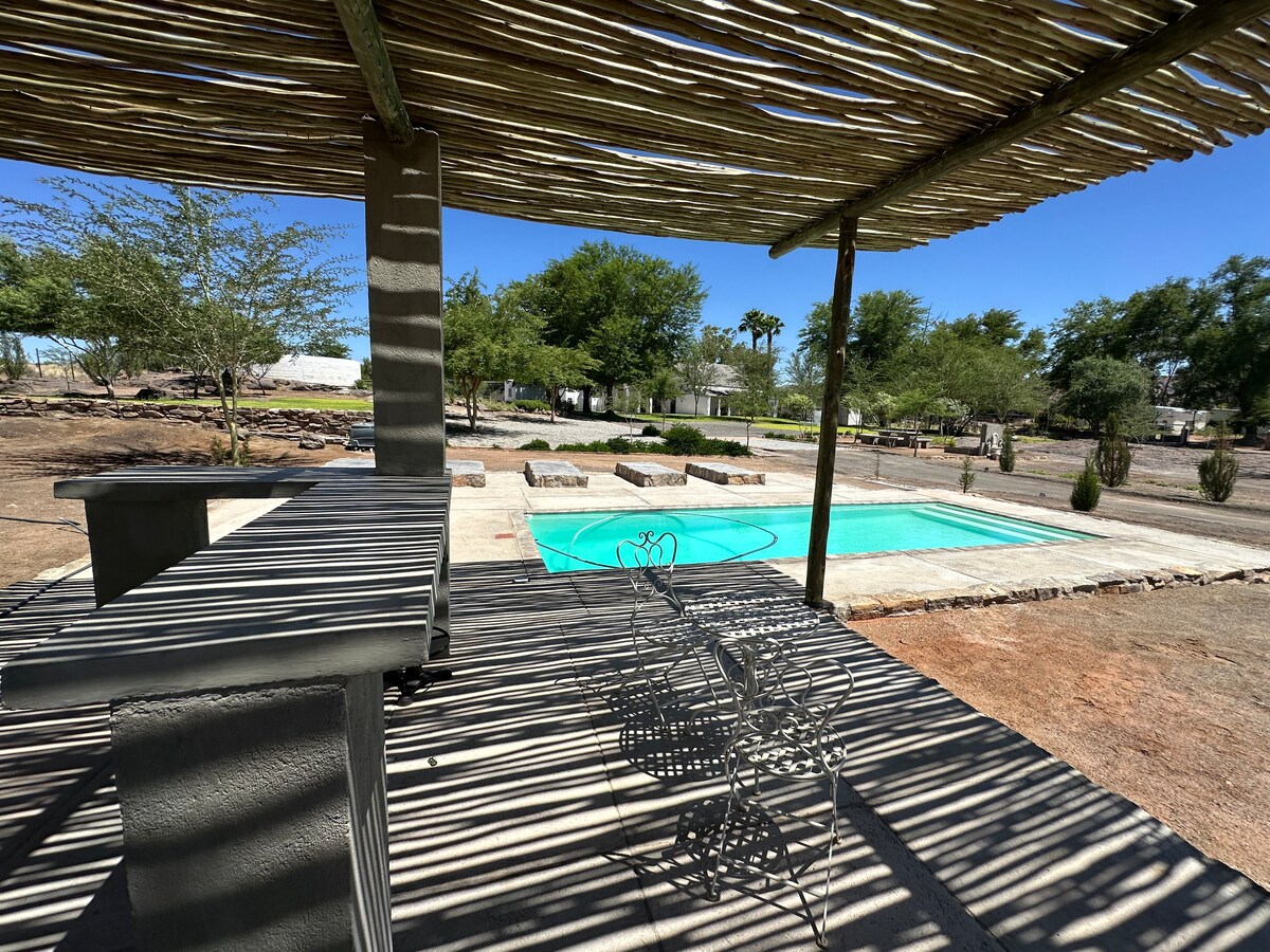 Naša mirna vrtna hiška se nahaja v mirni soseski, 30 minut vožnje od slapov Augrabies. Po dolgem dnevu na cesti v naši vrtni oazi se ohladite. Dobrodošli, da skočite v bazen ali se sprostite ob ribniku koi. Ne glede na to, ali prihajate v Northern Cape kot turist ali poslovno - naš blaženi skrivni vrt bo osvežujoča izkušnja. Imamo dodatne sobe in hišne ljubljenčke