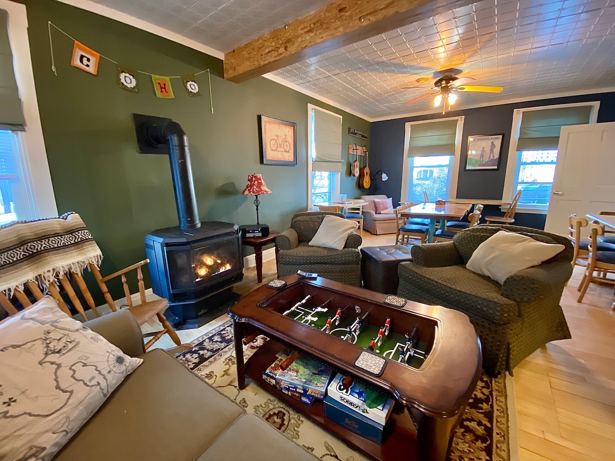 The Bootlegger Room is a private room with 2 single beds. Bath and lounge areas are shared. Check in 4-9 pm only. Hikers, bikers, event attendees and world travelers welcome... Check into The Hobo Hostel for a unique experience. PRICING IS PER PERSON. DISCOUNT For second person. must love trains 😊