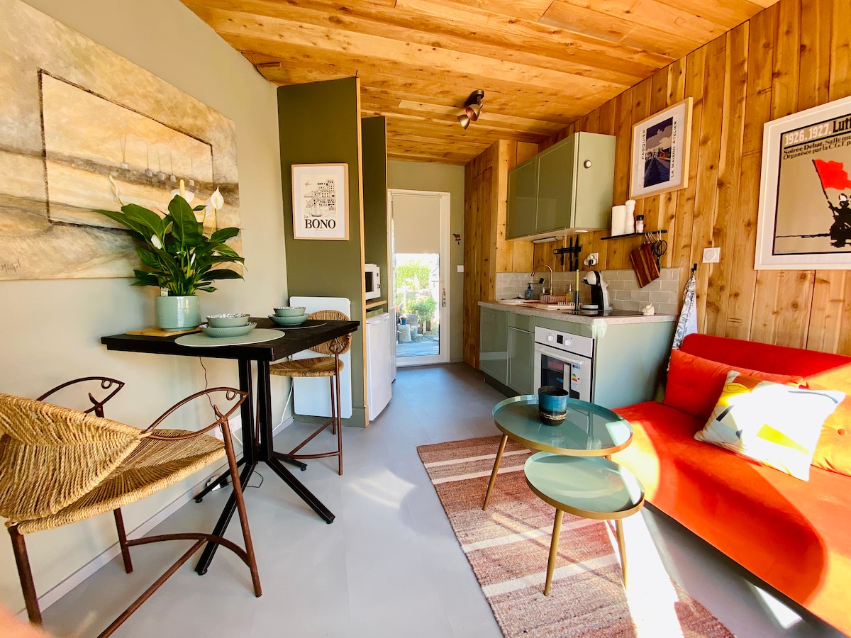 Located in the heart of the Gulf of Morbihan, on Île-aux-Moine, this independent studio is ideally located to discover all the beauty of the "Pearl of the Gulf", on foot or by bike. Ideal to be as close as possible to nature and disconnect from ambient stress...