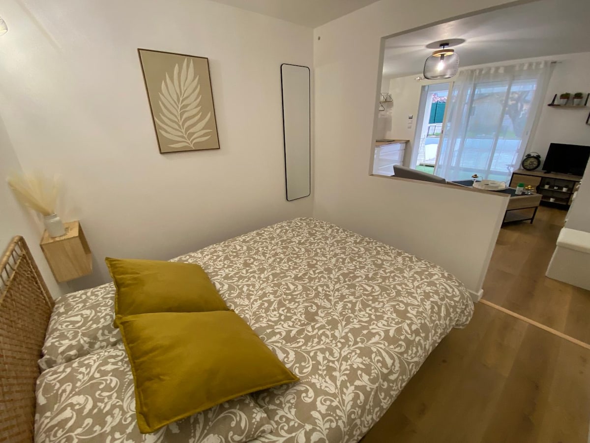 Prostorni studio velikosti 50 m2, pravo zatočišče miru, 100% neodvisno, s kuhinjo, kopalnico in sončno teraso, kjer lahko uživate v izjemnem sredozemskem podnebju. Ljubitelji narave, raziščite okoliške pohode s spektakularnim razgledom. Neflix, družabne igre in knjige so na voljo v studiu za sproščujoče večere. Rezervirajte oddih, ki združuje udobje, naravo in zabavo!