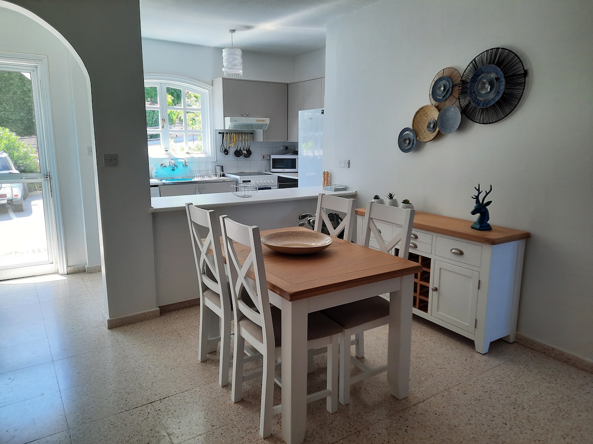 Take it easy at this unique and tranquil getaway. Located in the peaceful mediterranean suburb of Kolossi, this property is the perfect place for a getaway located only a 5 minute drive from the beautiful curium beach and 10 minute drive from My Mall Limassol , while central to Pafos and Larnaca airport. This property has direct access to the motorway which takes you into the city of limassol within 15 minutes.The property outlooks the ancient Kolossi Castle which is next door. Enjoy your stay!