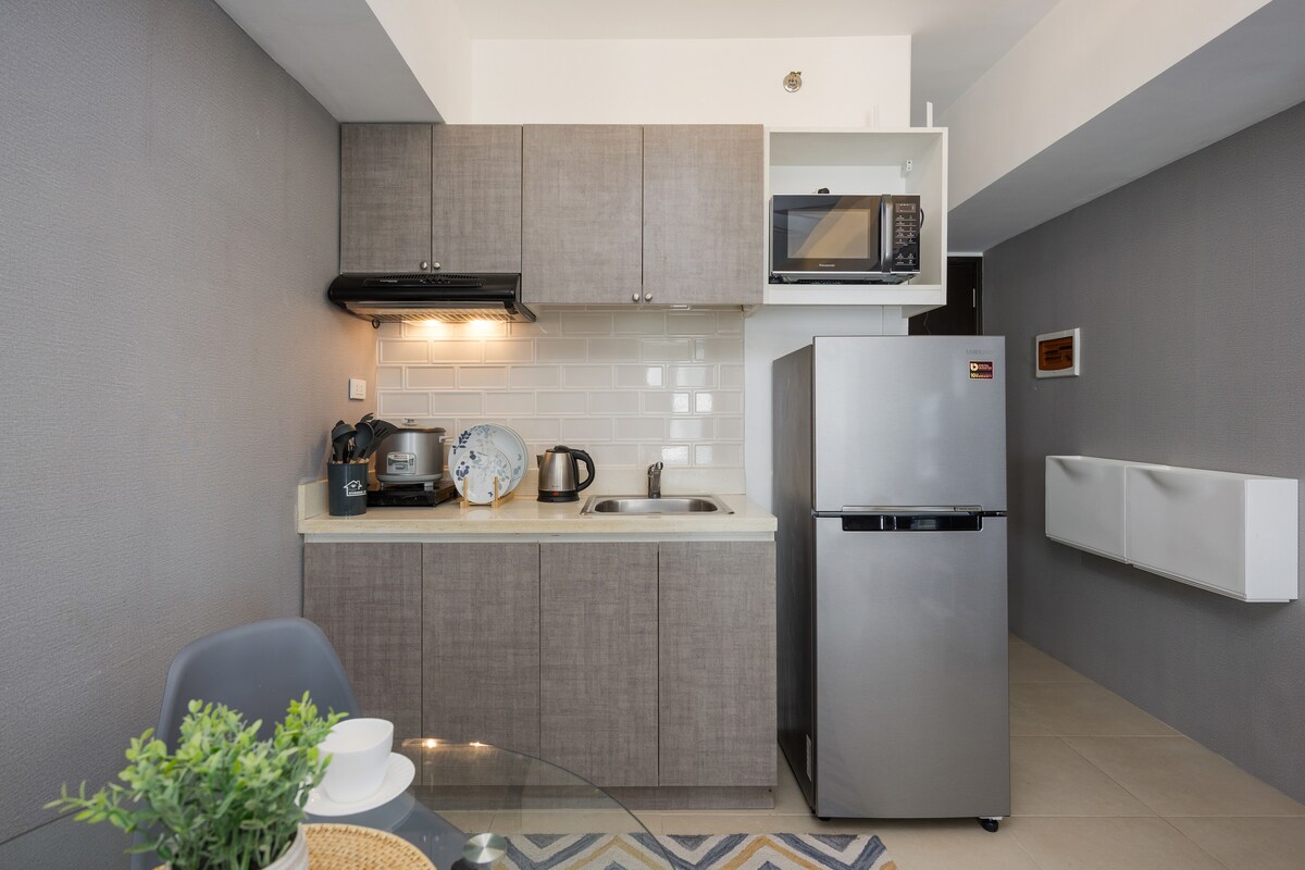 Fully furnished studio type Condo in the I.T. Park Cebu City, that has been professionally designed for the comfort of the guest. Equipped with full kitchen with complete utensils and dishes, Electric stove,aircon,water heater, iron,smart TV,refrigerator,upto 50mbps internet speed, microwave, rice cooker and water kettle. The bldg. is within 5 minutes walk to Ayala Mall Central Block. There’s a wide array of restaurants to choose from. It is easy to book Grab or taxi to get your destination.