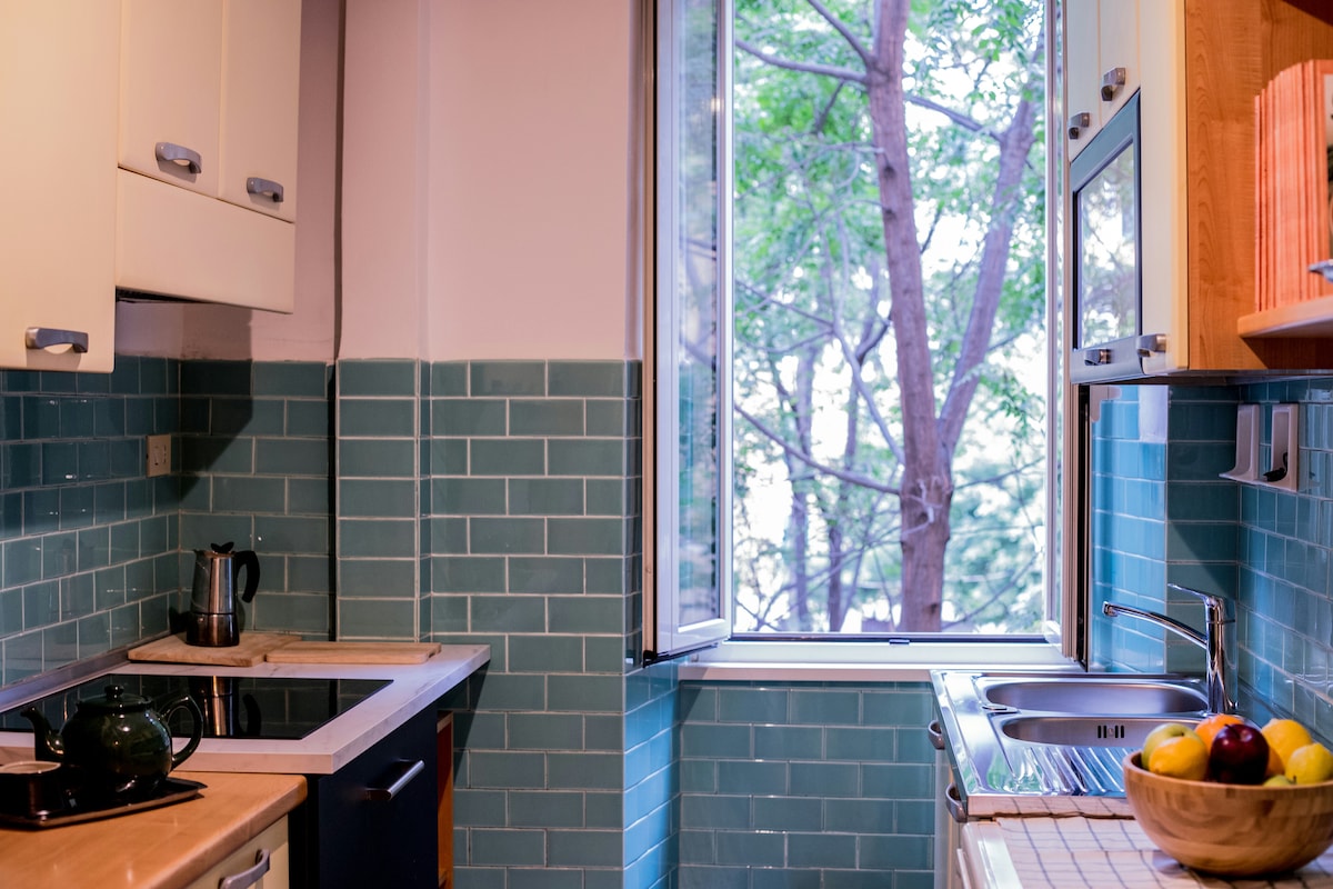 A Casa di Giorgia è un elegante loft Liberty in un palazzo storico romano, con soffitti a cassettoni gialli, vetrate originali e pavimenti in parquet. Tre balconcini rendono l’appartamento luminoso e arioso. Dispone di una camera matrimoniale e di un divano letto alla francese. Situato nel quartiere Trieste, vicino a Villa Torlonia e al Quartiere Coppedè, è ben collegato al centro con la metro Annibaliano. Ideale per 2-3 ospiti, con aria condizionata e cucina attrezzata.