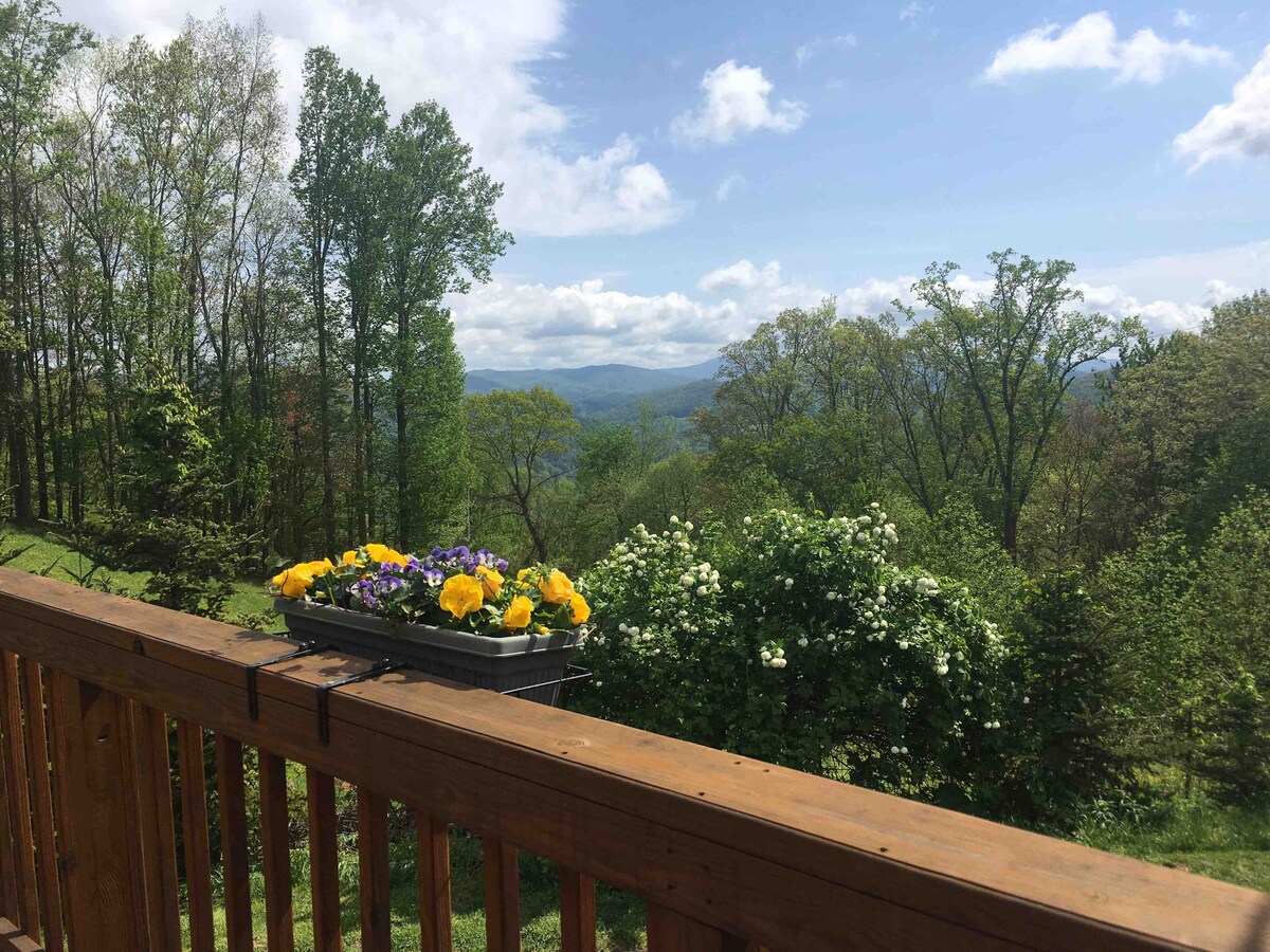 Udobna gorska hiša v mirni soseski, le 10 minut od centra mesta Boone in ASU. Uživajte v čudovitih zahodnih sončnih zahodih v gorah, medtem ko se sprostite v gugalnici na verandi. Prenočišče ima popolnoma opremljeno kuhinjo. Dnevna soba ima kabelsko televizijo, Wi-Fi in kamin. Namestitev ima čudovita senčna drevesa, kjer se lahko sprostite in uživate v okoliških kmečkih zemljiščih in živini. Jeseni so senčna drevesa med najbolj živahnimi odtenki oranžne in rumene barve v visoki deželi! Veselimo se, da vas bomo lahko sprejeli.