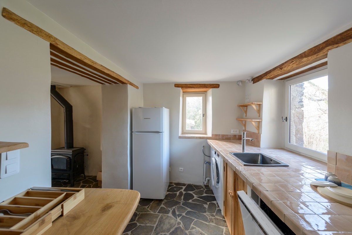 Naša prijetna in svetla koča, se nahaja v starodavnem cepinu, koča, ki je bila uporabljena za sušenje kostanja v Cevennes. Na voljo je opremljena kuhinja, spalnica z zakonsko posteljo (140 cm) in kopalnica s prho in straniščem. Majhna miza na vrtu in druga na terasi vam bosta omogočili obroke na soncu ali pod rešetkami. Na voljo je majhen žar (za ogled v majhni kleti pod kočo).