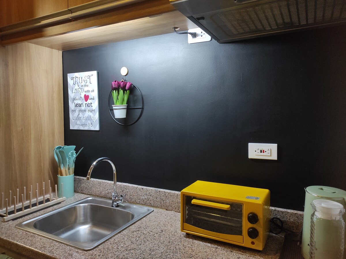 Vaše začasno prenočišče se nahaja v osrčju mesta Davao. Popolnoma opremljena enota z dvema kopalnicama, dve kopalnici. Profesionalno urejena notranjost za topel domač občutek. Komadi pohištva so bili skrbno izbrani, da ustrezajo vsem potrebam gostov. Zavese, posteljnina, blazine, razsvetljava in drugi dodatki za dom so bili uvoženi iz IKEA Dubai. Visokokakovostni aparati. Kuhinja je opremljena s kuhinjskimi pripomočki in dovolj prostora za shranjevanje. Za pomisleke glede pranja perila imamo pralni stroj s 100% sušilnim mehanizmom.