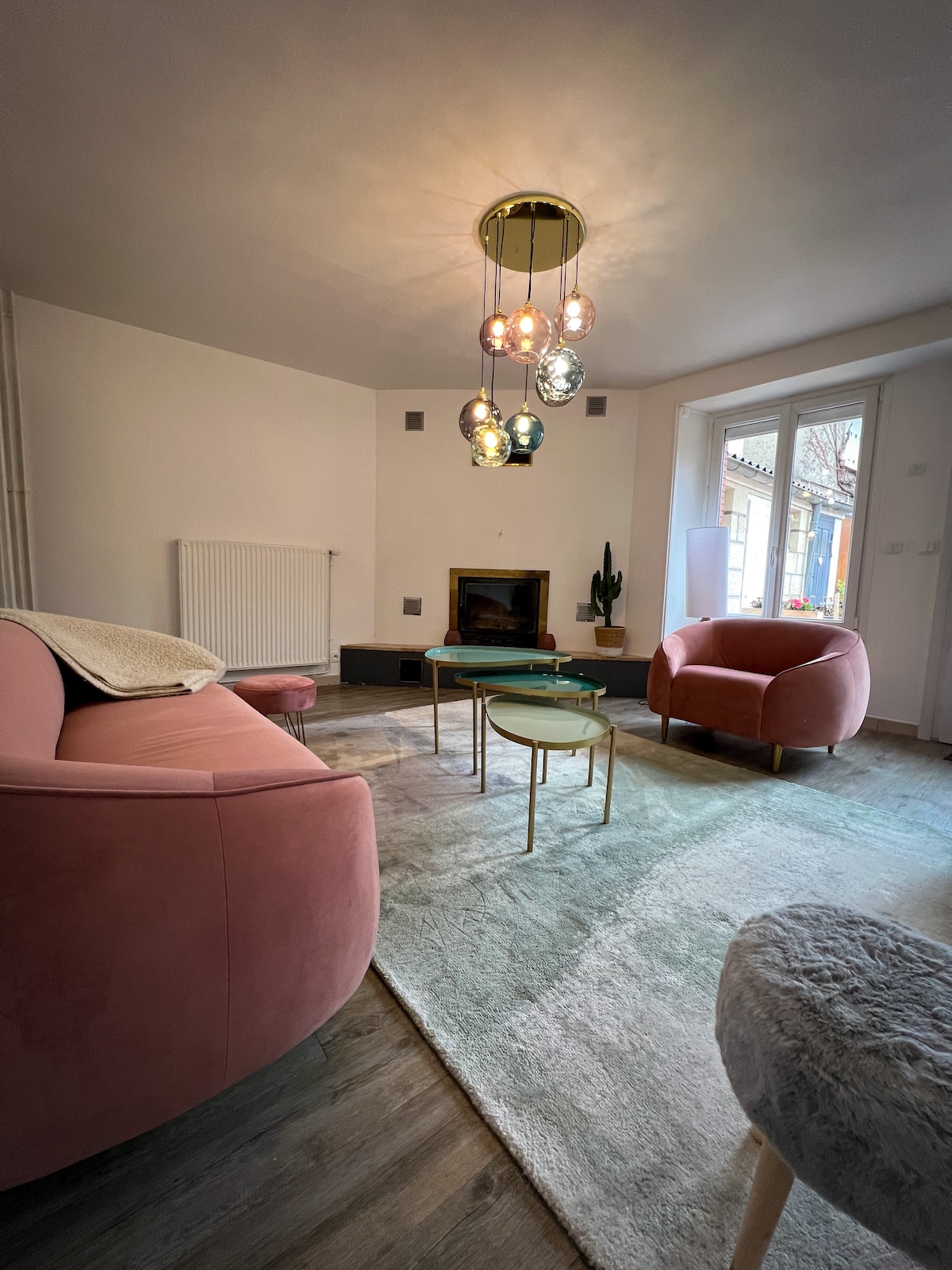 Treat yourself to a rare escape in one of the most prestigious villages of Champagne. Our apartment, nestled in a characterful 1894 building, welcomes you into an elegant atmosphere where historic charm and modern comfort blend seamlessly. Fully air‑conditioned, the space is designed to make everyone feel at home. The living room, featuring exposed beams, Voltaire armchairs and vintage furniture, offers the perfect setting for shared moments.