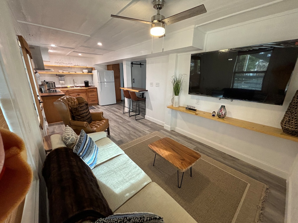 This charming studio apartment is a perfect get away spot. Minutes walk from the beach. Out door shower, detached bathroom about twenty steps from the room with utility sink. Outdoor sitting and dining area with grill and swing. Perfect for rest and relaxation. Mini fridge and freezer, coffee pot and toaster oven. Available space to store surf boards and equipment. Beach chairs, umbrella, boogie board and beach chairs.