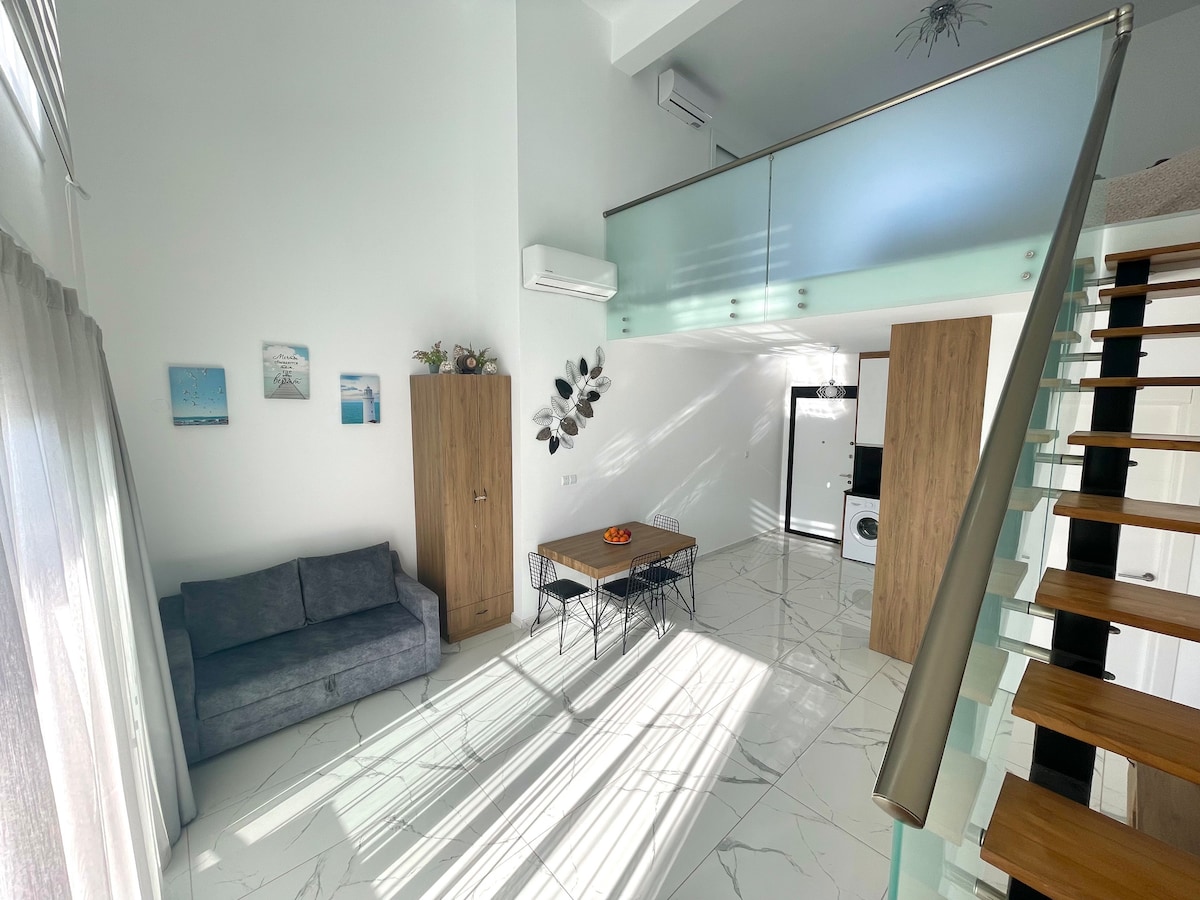 Popolnoma novo luksuzno prenočišče z 2 spalnicama in panoramskim pogledom na morje na severnem Cipru, kot nalašč za družine in pare, ki iščejo udobje in slog. Nahaja se v varnem luksuznem kompleksu z varnostno službo, ki je prisotna ves čas, luksuznim dvigalom, neskončnim bazenom na strehi, telovadnico, savno in trgovino z osnovnimi potrebščinami. Peš do peščene plaže in gradu Othello. Hitra Wi-Fi povezava, klimatska naprava, sodobna popolnoma opremljena kuhinja, pralni/sušilni stroj. Brezplačno parkiranje in polnjenje električnih vozil. Mirno in varno območje v bližini nedotaknjenih plaž Karpaz.