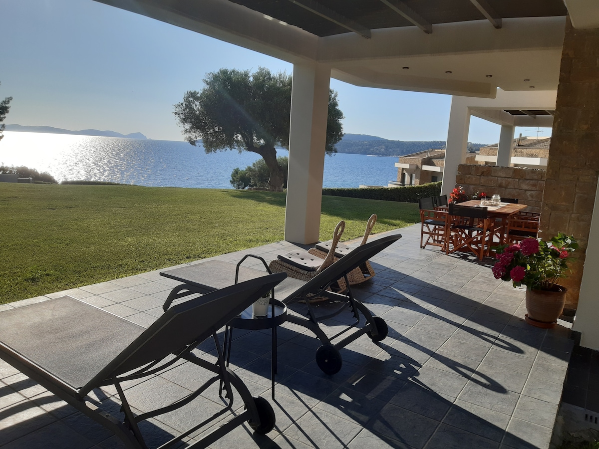 Družinski dom smo obnovili leta 1955 in povezali lokalni, tradicionalni element s sodobnim načinom življenja. Posestvo se nahaja na hribu nasproti bizantinskega gradu Toroni in njegove znane obale. Vila ponuja neomejen pogled na morje in gore. Zagotavlja zeleno površino 500 m2, z ustrezno urejenim prostorom za pravi počitek. Lokacija je dobesedno edinstvena, saj je blizu in hkrati daleč od mnogih.