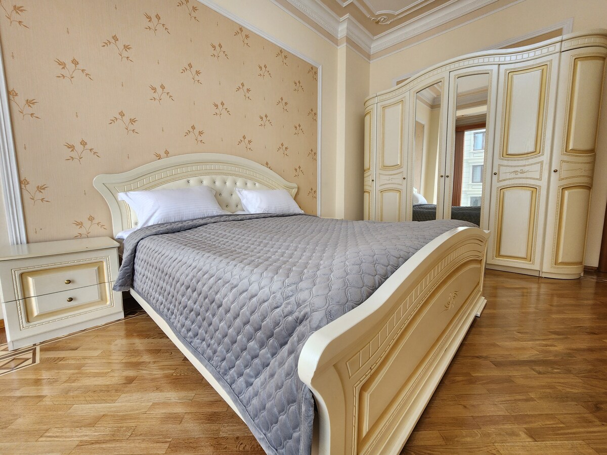 To 240 kvadratnih metrov veliko stanovanje ponuja razkošno bivanje v osrčju mesta. S tremi spalnicami in eno dnevno sobo je kot nalašč za družine ali tiste, ki uživajo v zabavi. Nahaja se na odlični osrednji lokaciji, le nekaj korakov stran od nakupovalnega središča Port Baku Mall, nakupovalnega središča Crescent Mall, hotela Absheron Marriott, restavracij in trgovin.