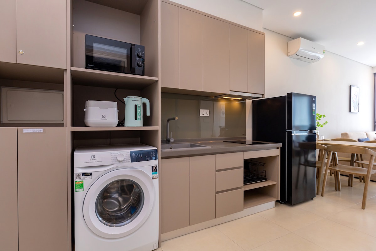 Located in the city center, adjacent to city's super market and only 5 minutes walk to the Back beach. Super facilities includes swimming pool, kids yard, ping pong, library, outdoor BBQ, karaoke, gym, sky bar. The apartment is well equipped with internet, cable international channel TV, washing machine, dish wash machine, cooker, refrigerator, micro oven and cooking tools will help you enjoy yourselves during the time staying here. There is also desk for those who would like a space for working