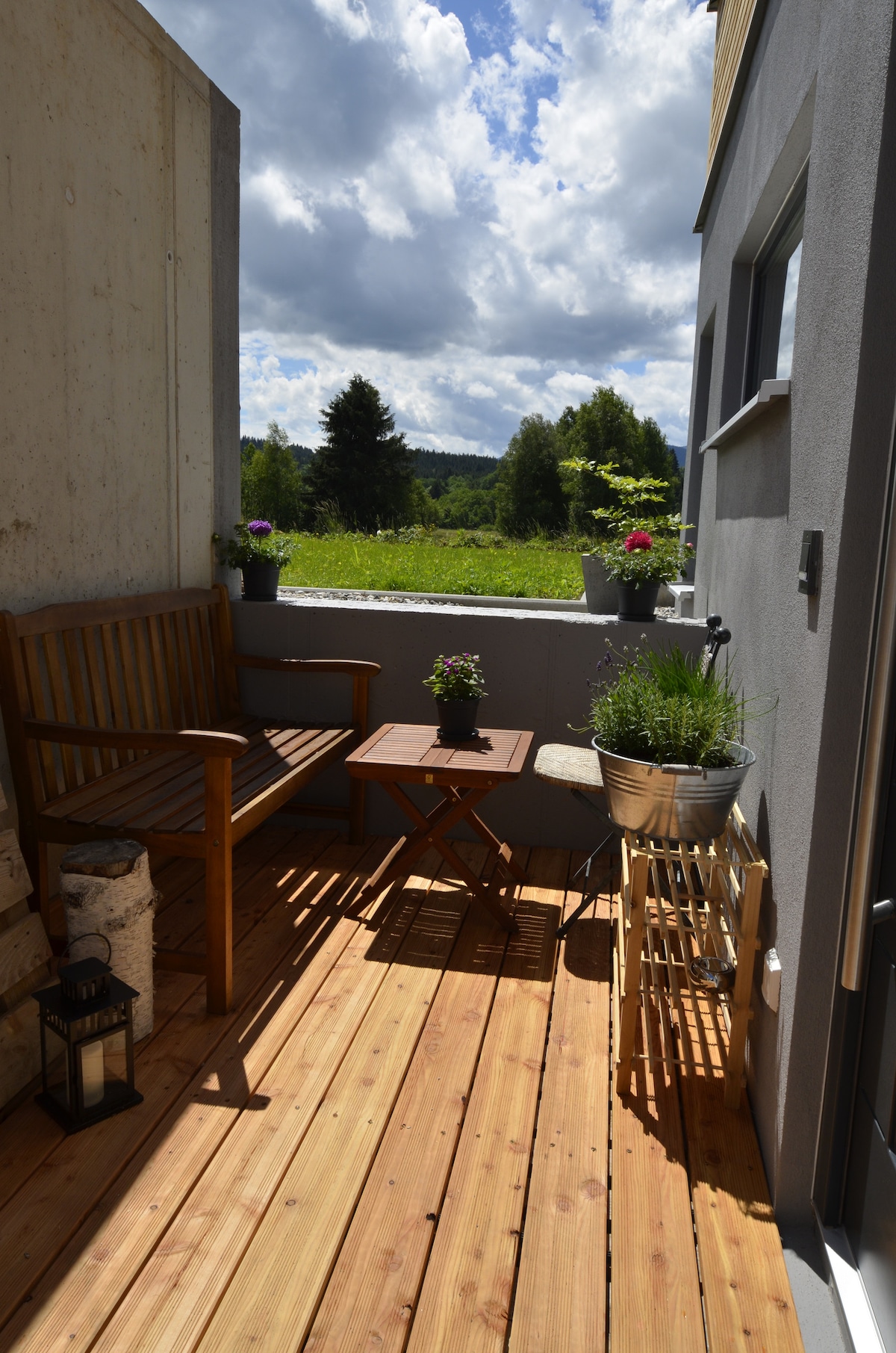 Lesena tla, glineni omet, staro z ljubeznijo obnovljeno leseno pohištvo, kopalnica je velika in svetla. To stanovanje nudi prostor, kjer se lahko sprostite in počutite udobno. Kuhinja-dnevna soba je sodobna in preprosta ter vas vabi, da kuhate in uživate. Dnevni prostor je preplavljen s svetlobo, ima čudovito okno za sedenje in velik balkon s čudovitim razgledom na alpsko vznožje. Zaradi dveh udobnih spalnic in majhna glinena mavčna savna je stanovanje majhen začasen dom.