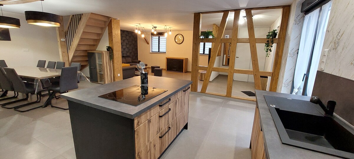 Očarljiv dupleks v našem predelanem sušilniku tobaka, ki je bil spremenjen v dom. V pritličju je spalnica z dvema enojnima posteljama, v zgornjem nadstropju pa klimatizirana spalnica z zakonsko posteljo in medetaža z dvema enojnima posteljama. Uživajte v udobnem in svetlem prostoru z odprto opremljeno kuhinjo. Naša vas, ki se nahaja med Strasbourgom in Colmarjem, je blizu Nemčije, 10 minut od Europa-Parka, številnih alzaških božičnih tržnic in Haut-Koenigsbourga.