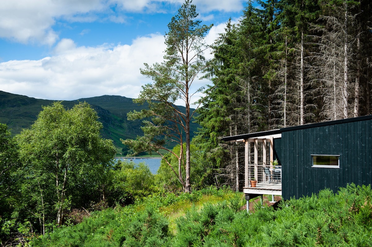 Enjoy the lovely setting of this romantic retreat in which Tree Hoose is uniquely elevated on our hillside croft over looking Loch Broom with sweeping spectacular Scottish Highland views. This beautiful space, just 15 mins drive from bustling Ullapool, has the blissful feeling of being worlds away from everything. Tree Hoose boasts relaxed open plan accommodation, comprising 1nr kingsize + 1nr single bed, warmed by underfloor heating and a central woodburner for an irresistibly soft evening.