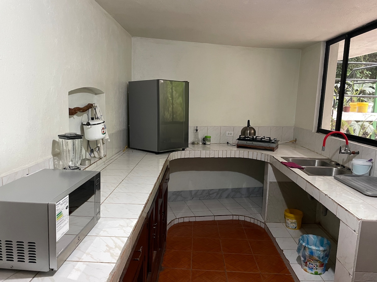 Uživajte v mirnem bivanju v naši podeželski hiši, ki se nahaja v zasebnem naravnem rezervatu. Bivališče je kot nalašč za družine ali skupine prijateljev. Ponuja pohode po slapovih in gozdnih poteh, opazovanje ptic ter srečanja z alpakami in konji. Ob večerih si lahko privoščite žar in se zberete okoli ognjišča. Imamo tudi restavracijo z osupljivim razgledom na reko, kjer lahko uživate v okusnem zajtrku, kosilu ali večerji. Popoln oddih le 1 uro od Quita!