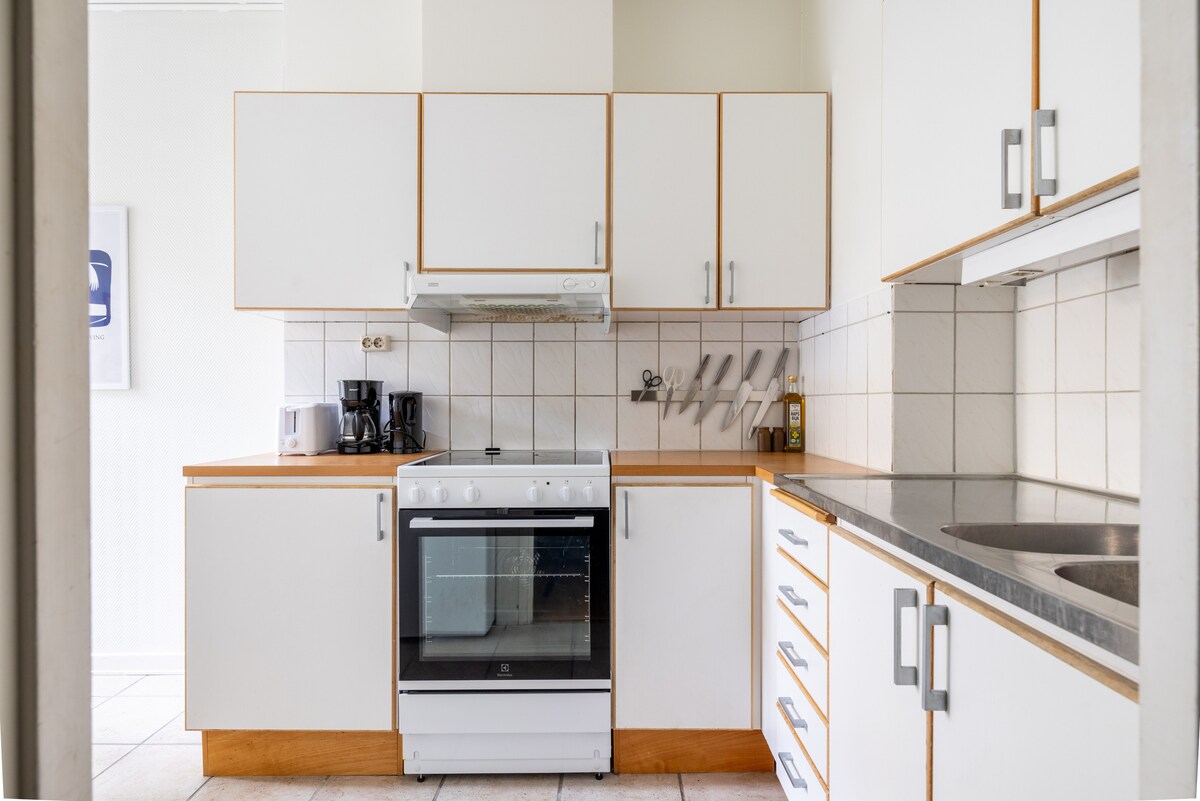 Mysig och fräsch lägenhet med både balkong och separat uteplats. Sovrum med dubbelsäng för två personer samt en bäddsoffa i vardagsrummet för två personer. Det finns även en resesäng för de riktigt små. Badrum med dusch, tvättmaskin och utrymme för att hänga upp kläder. Fullt utrustat kök med diskmaskin, spis, ugn, micro, kyl/frys samt en mysig och ljus hörna med matbord.