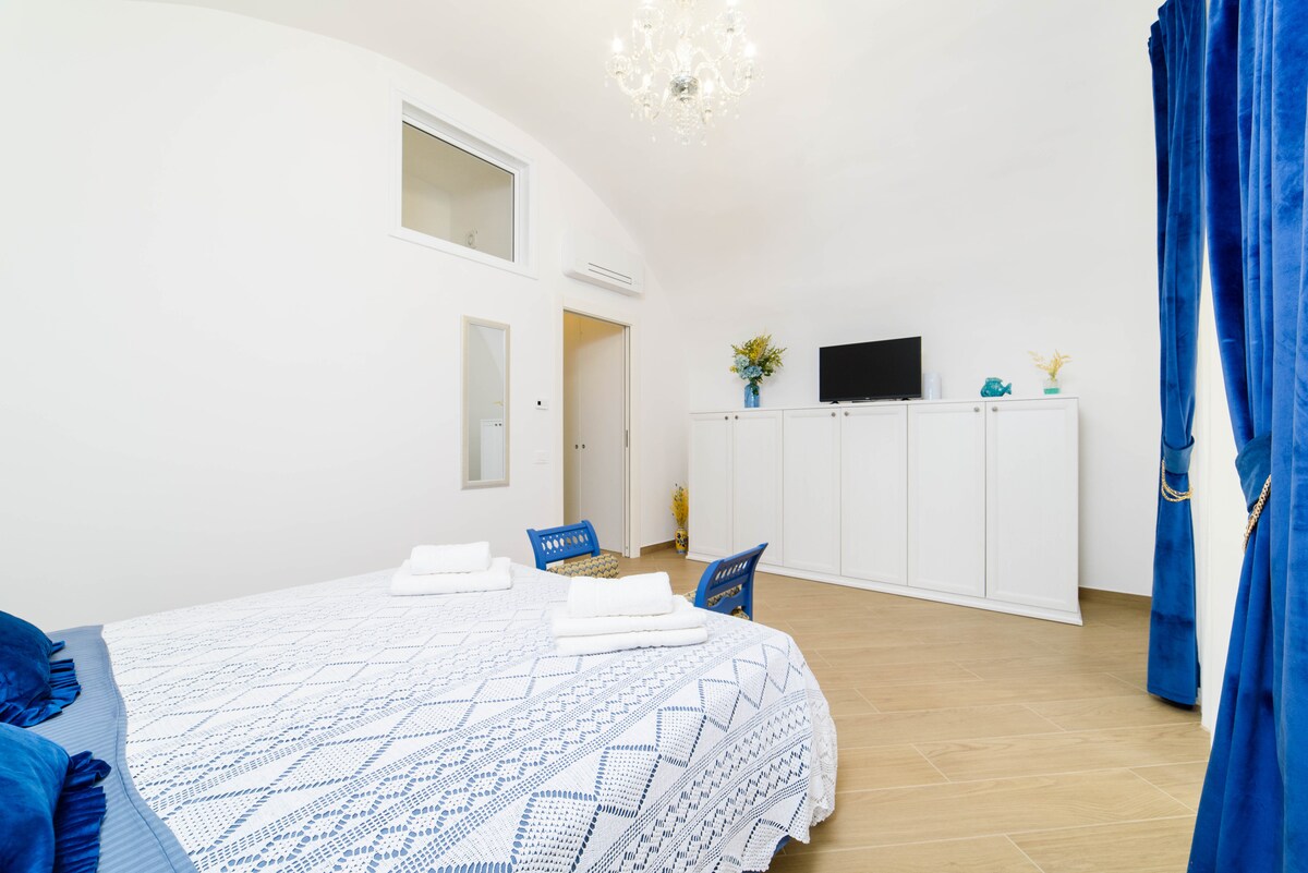 Julij je odprt prostor zgodovinskega umetniškega pomena, ki je bil prenovljen in obnovljen, da bi zaščitil in izboljšal prvotno vzdušje. Privilegiran in prevladujoč položaj v bližini glavnih znamenitosti Starega mesta vam omogoča, da občudujete Amalfijsko obalo in morje skozi široka okna. Prostor z zakonsko posteljo je kot nalašč za parne počitnice v mestu ali za 3 (raztegljiv kavč). Če je povezan z olimpijskim stanovanjem, lahko sprejmete 6 ljudi. Na voljo je tudi prenočišče, kjer lahko bivata druga dva gosta.