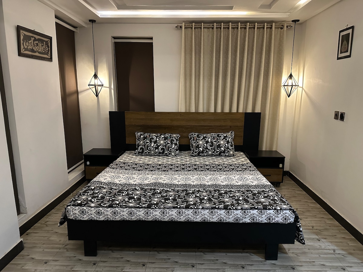 Welcome to your stylish and spacious home away from home in Lahore! This modern 2-bedroom apartment is thoughtfully designed for comfort, whether you're visiting for business, leisure, or a family stay. Located in a prime area, it offers all the essentials you need — and a touch of luxury you’ll love. ✨ Comfortable 2 bedroom ⚡ Luxury Living room ✨Free Parking ☄️AC , WiFi ,Netflix ⚡Fully equipped Kitchen ✨3 Clean washroom Airport,DHA,Malls,Historical Places-minute away