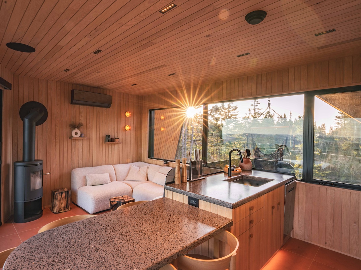 Quartz je sodobna mikro-hiška, ki se nahaja na vrhu gore in je zasnovana tako, da vam ponuja panoramski razgled na okoliške gore in doline. Odkrijte ta skriti zaklad v kanadskem borealnem gozdu, ki združuje udobje in funkcionalnost v vseh letnih časih! Uživajte na prostem tako, da se sprostite v masažni kadi, ki je na voljo v kateremkoli letnem času. Nepozabno doživetje le 30 minut od mitskega mesta Quebec, ki je na Unescovem seznamu svetovne dediščine.