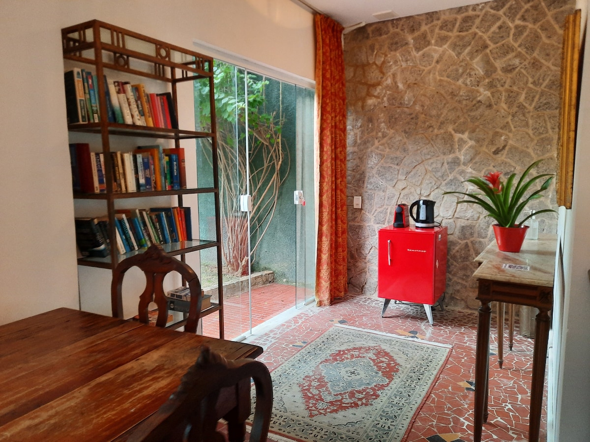 Praktična in dobro locirana nastanitev za tiste, ki želijo izkusiti Rio de Janeiro na dostopen in funkcionalen način. Hiša se nahaja v tradicionalni soseski Santa Teresa, ki je polna identitete in se nahaja v bližini središča Ria, soseske Lapa in glavnih prometnih točk mesta. Med karnevalom je lokacija odlična za dostop do vaših potovanj, hkrati pa vam omogoča organiziran prostor za počitek. Idealno za tiste, ki iščejo preprosto in dobro strukturirano okolje, ne glede na to, ali gre za turizem, delo ali dogodke v mestu.
