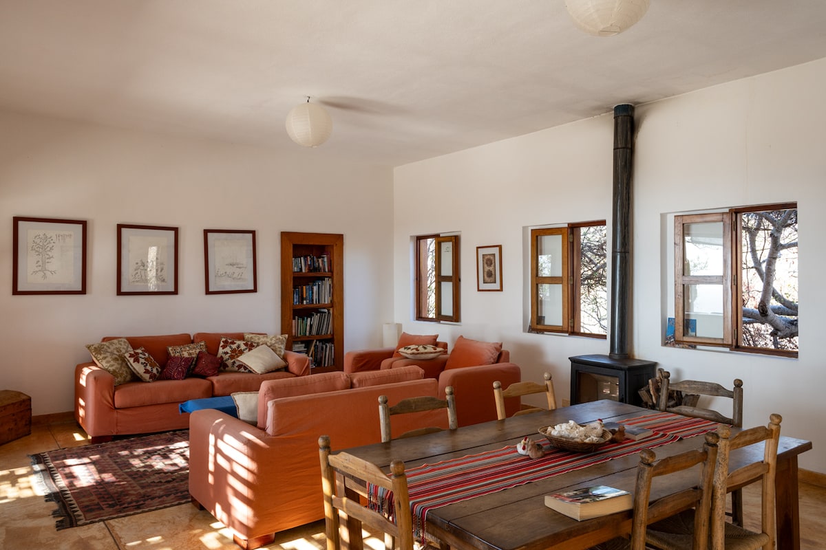 Sprostite se in si napolnite baterije v prijetnem samostojnem glampingu Casa del Sol v Baja Glampingu. Prostorna soba ima zakonsko posteljo, udobno sedežno garnituro in je blizu skupnih kopalnic za lažji dostop. Uživajte v nežni sončni svetlobi, razgledu na gore in mirnih puščavskih nočeh pod zvezdami. Idealno za pare ali popotnike, ki iščejo preprost pobeg v naravo. 🌞✨