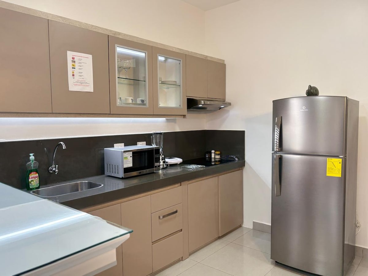 Zasebni apartma z dvema ločenima sobama, klimatsko napravo in pametno televizijo v eni sobi ter ventilatorjem v drugi sobi, zasebno kopalnico, ki si deli obe sobi, kuhinjske pripomočke iz granita in mini hladilnik. Počutili se boste, kot da ste doma🥰❤. Pišite mi notri, da uskladite svoj prihod. Poceni ponoči.