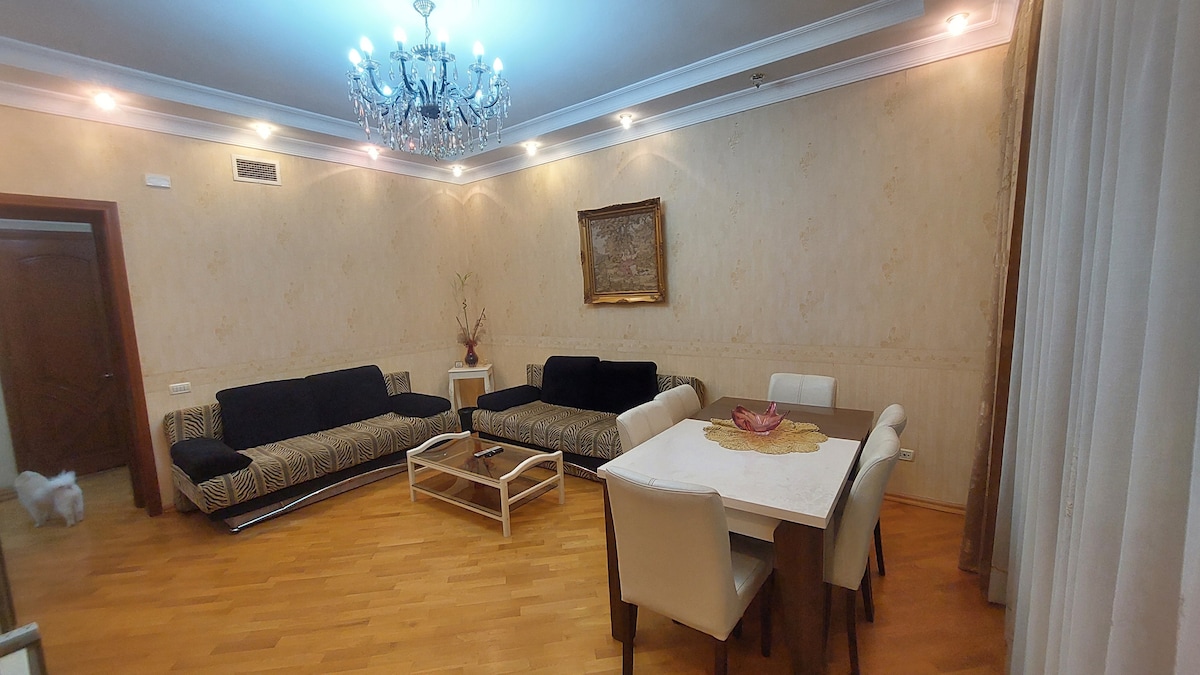 Bivajte v našem na novo prenovljenem stanovanju, le 5 minut od Fountain Squarea (ulica Nizami)in 7 minut od starega mestnega jedra (Icherisheher). Idealno za popotnike, ki želijo raziskati glavne znamenitosti Bakuja. Ključne značilnosti: odlična lokacija, blizu restavracij, kavarn in trgovin. Sodoben skandinavski slog z novim pohištvom. Zasebni balkon za sproščujoč razgled. Varna stavba z non stop varnostjo in hitrim dvigalom. Popolnoma opremljena kuhinja in Wi-Fi. Veselimo se, da vas bomo lahko sprejeli.