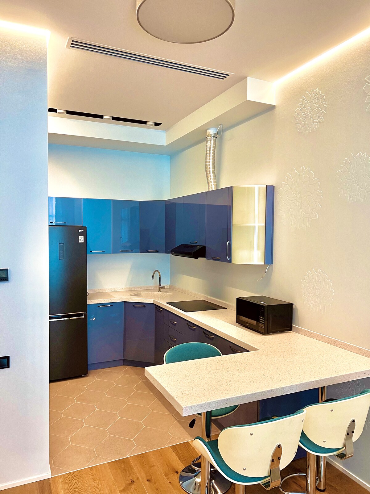 Doživite Baku iz našega izvrstnega studio apartmaja Boulevard View! Samo 5 min hoje do morske fronte in 10 min hoje do nakupovalnega središča Deniz ter 5 min s taksijem do središča mesta. Nahaja se v novem varnem bivališču s hišnim upraviteljem in uživajte v udobju s supermarketom v pritličju. Prepustite se uživanju v telovadnici/spa centru(ni vključeno). Stanovanje ima 1 spalnico, raztegljivo posteljo v dnevni sobi in sodobno udobno prho.