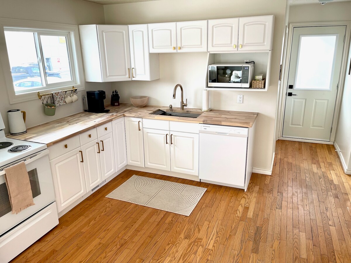 Welcome to Quiet Corner Escape! This peaceful 3-bedroom home offers everything you need—no stairs, fully stocked kitchen, cozy living room with fireplace, Wi-Fi, Telus Optik TV, laundry, and 2-vehicle parking. The master has a king bed and ensuite, plus a guest queen and single room. Perfect for families or long stays, with managers living right across the street for quick support. Your quiet home away from home!