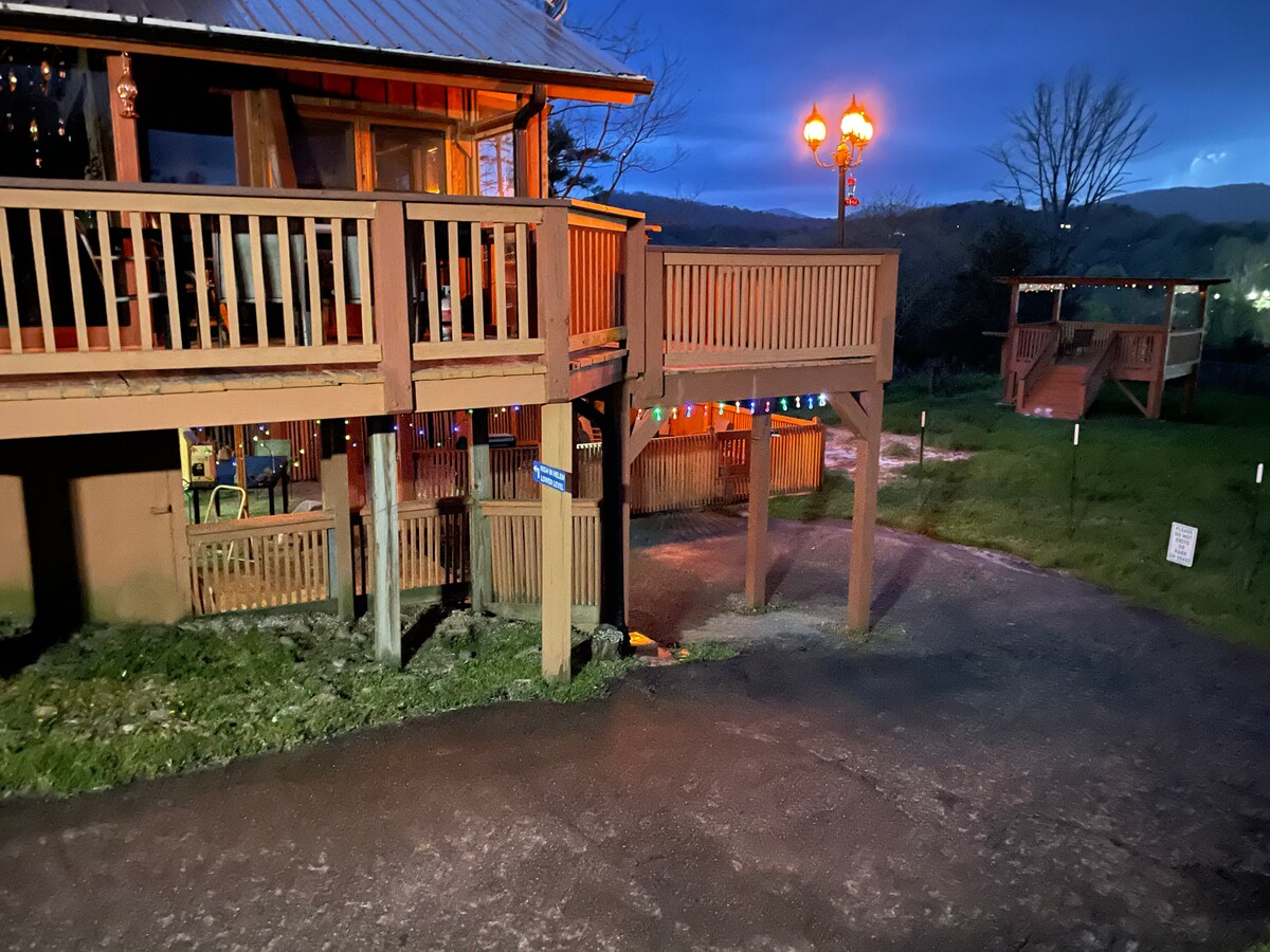 To je nižja raven v obliki črke A. Skozi vsako okno je čudovit razgled. ZAKONSKA postelja z veliko zakonsko posteljo. Kopalnica - prha. Nova kuhinja z airfryjem, plinski žar, Kurig k/ground. Zelo velika masažna kad s slano vodo (masažna kad je skupna). Pohodniške poti so povsod naokoli. Bari in restavracije so dostopne peš. 70-palčni televizor, 44-palčni televizor in 9-metrska miza za biljard. Samo za 2 odrasla gosta! doplačilo za hišne ljubljenčke. dodatni malček v redu. Hiša v zgornjem nadstropju se oddaja ločeno. Koze so zunaj! brez psov, težjih od 50 funtov. Vtič za počasno polnjenje električnih vozil ob vratih na stebru